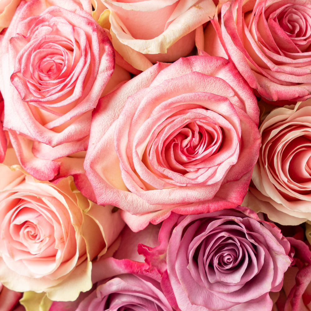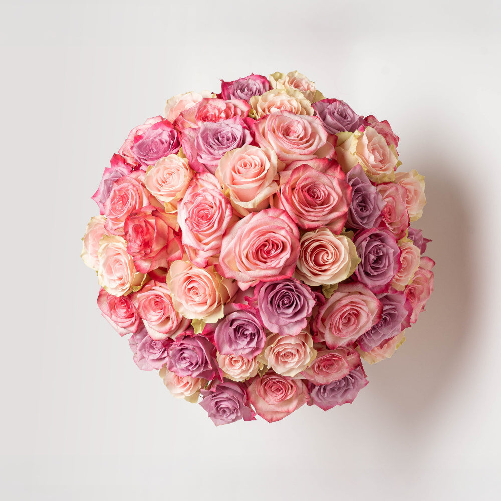 ¿Qué incluye? ¡12 rosas blancas, 12 rosas lila y 12 rosas rosado novia! Estas flores de colores vibrantes y variados seguramente alegrarán el día de cualquier persona que las reciba.